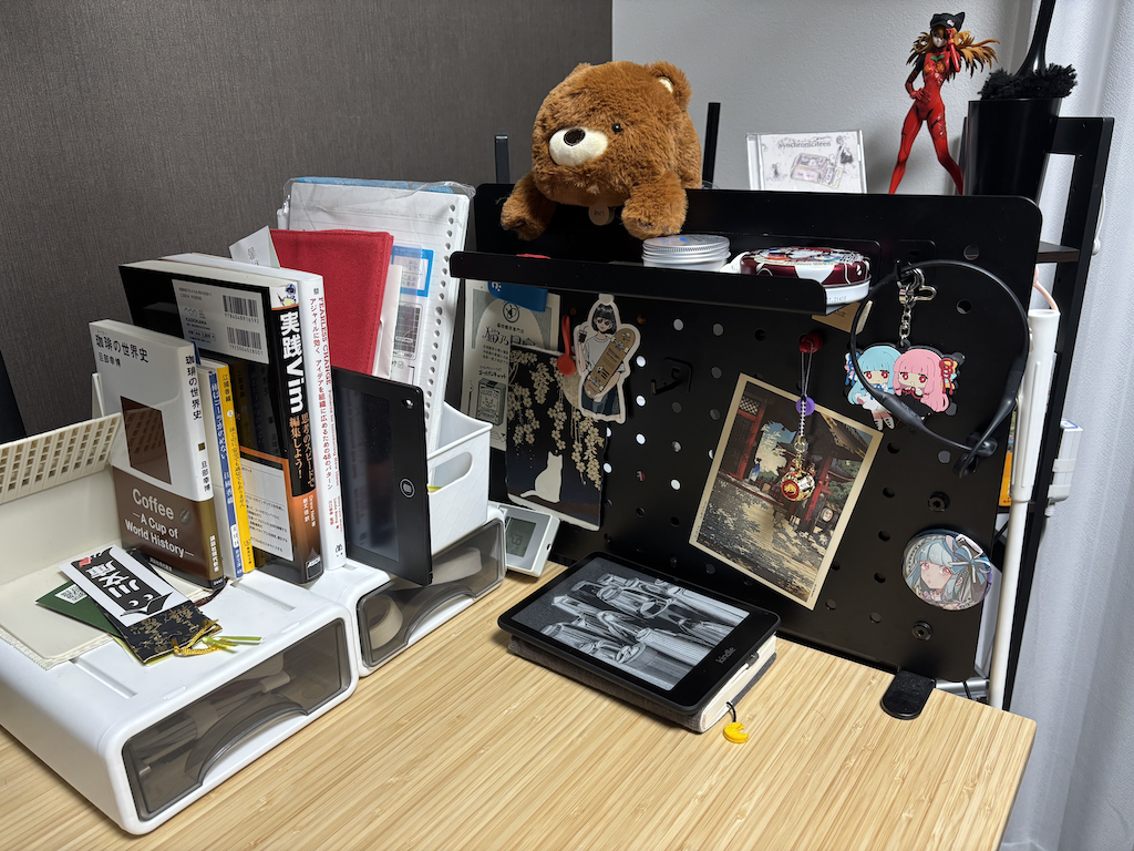 ほかは有孔ボードを変更したくらい。新しく買ったほうはマグネットがくっつく。これのおかげでだいぶレイアウトの自由度が上がった。